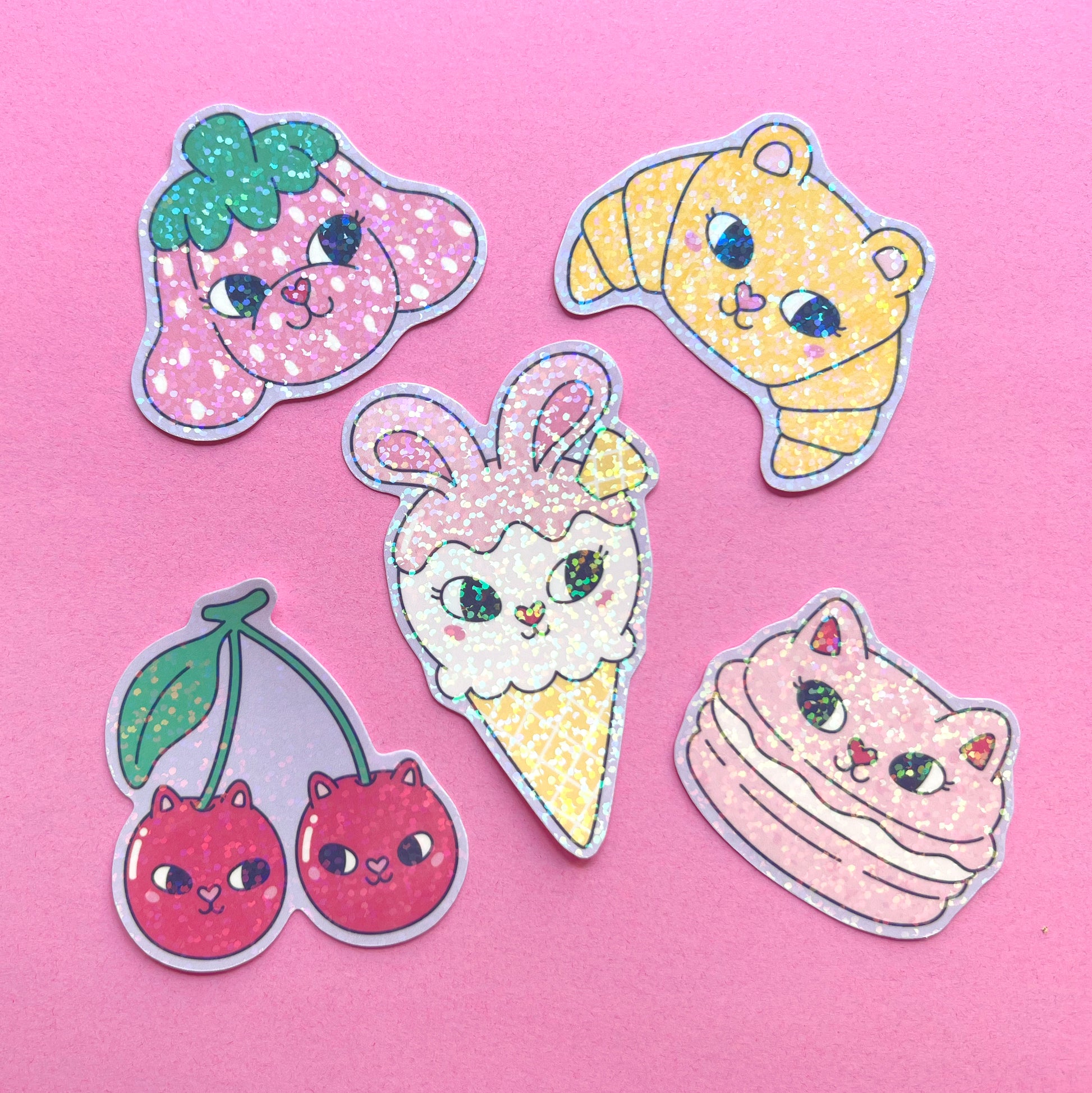 Meet the sweetest bunch of pets around with this sparkly 5-piece sticker pack. Slap them on a notebook, helmet, lunch box, pretty much anywhere!